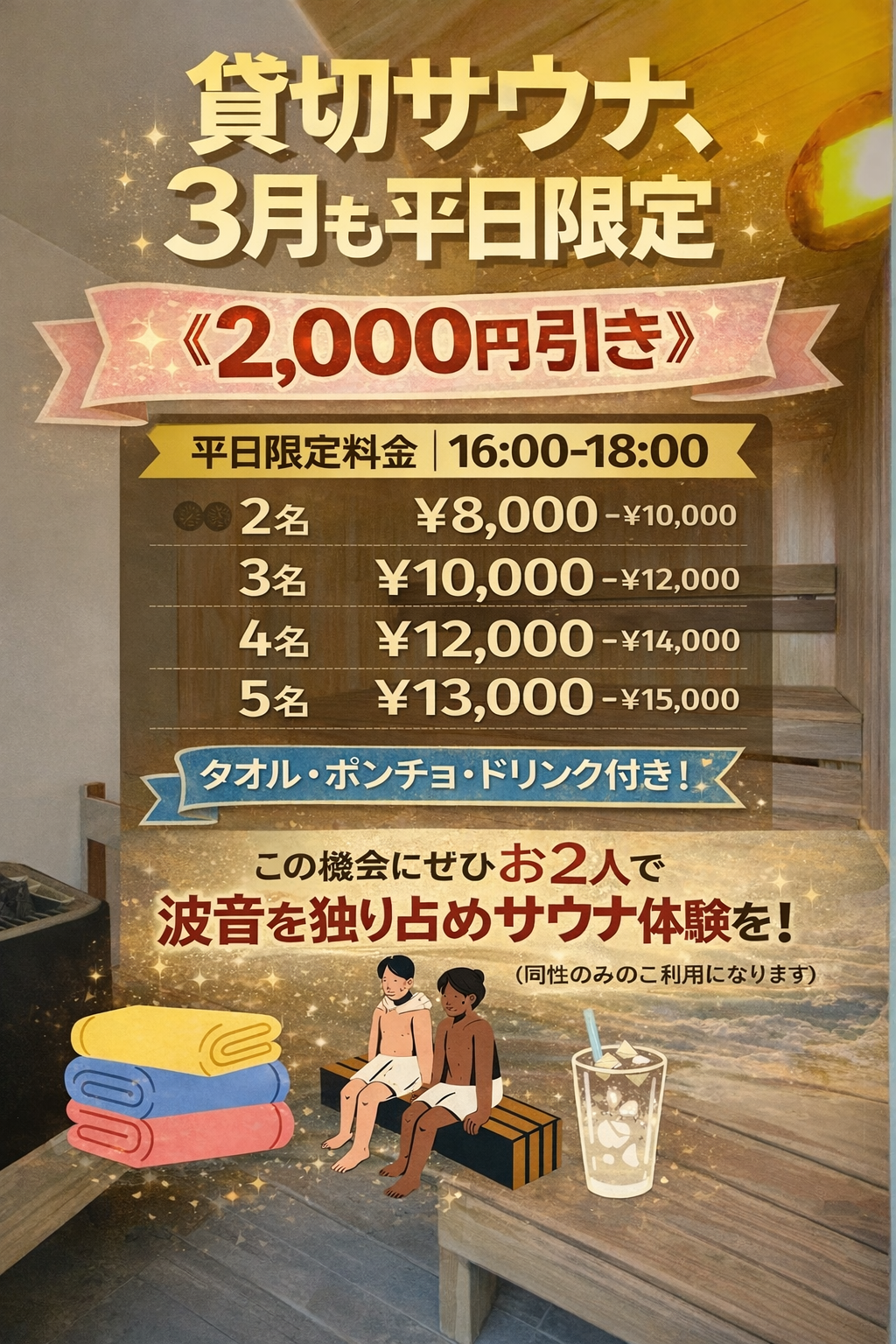 16:00-18:00 | 1日2組限定の完全貸切サウナ